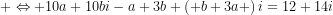 $$\Leftrightarrow \left\{ \begin{matrix} b=3 \\ 2b-a=-4 \\ \end{matrix} \right.\Leftrightarrow \left\{ \begin{matrix} b=3 \\ a=10 \\ \end{matrix} \right.$$